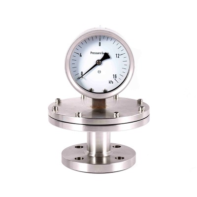 সান্টিস বা সহজেই দূষিত মিডিয়াগুলির চাপ পরিমাপের জন্য স্যানিটারি অ্যাপ্লিকেশনগুলির জন্য যেমন দুগ্ধজাত পণ্য, ওয়াইন শিল্প, সস, ফার্মাসিউটিক্যাল তরল ইত্যাদির জন্য ব্যবহৃত হয়। ডায়াফ্রামটি স্টেইনলেস স্টিল (316L) বা খাদ্য-গ্রেড পলিটেট্রাফ্লুওরোথিলিন দিয়ে তৈরি, মৃত কোণ ছাড়াই একটি মসৃণ পৃষ্ঠ সহ। এটি পরিষ্কার এবং জীবাণুমুক্তকরণ (যেমন বাষ্প জীবাণুমুক্তকরণ) প্রতিরোধ করতে পারে, মাধ্যমের অবশিষ্ট দূষণ এড়ানো।
