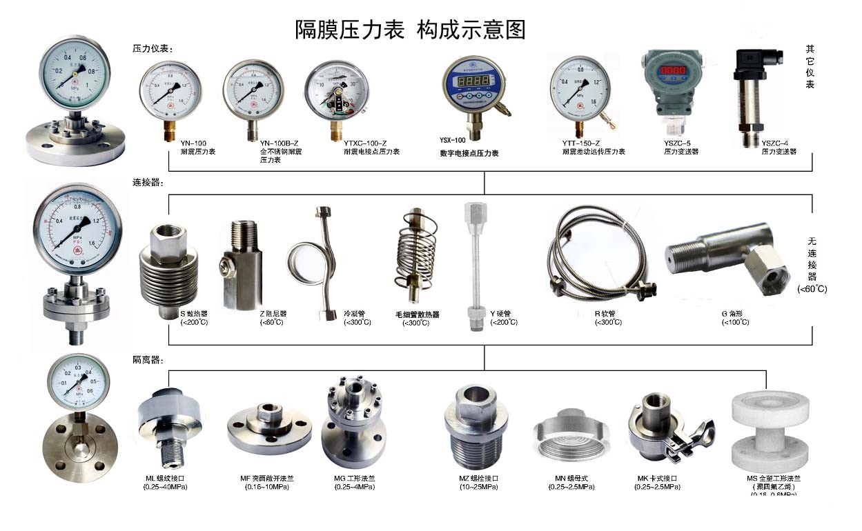 ◆ অ্যাপ্লিকেশন: অপ্রত্যক্ষ পরিমাপ কাঠামোর কারণে ডায়াফ্রাম চাপ গেজ উচ্চ সান্দ্রতা সহ তরল, গ্যাস বা দানাদার প্রবাহিত সলিডগুলির চাপ পরিমাপের জন্য উপযুক্ত, স্ফটিককরণ সহজ, শক্তিশালী জারা এবং উচ্চ তাপমাত্রা সহ। বিচ্ছিন্নতা ডায়াফ্রামটিতে বিভিন্ন বিভিন্ন ক্ষয়কারী মিডিয়াগুলির সাথে খাপ খাইয়ে নেওয়ার জন্য বিভিন্ন ধরণের উপকরণ রয়েছে।