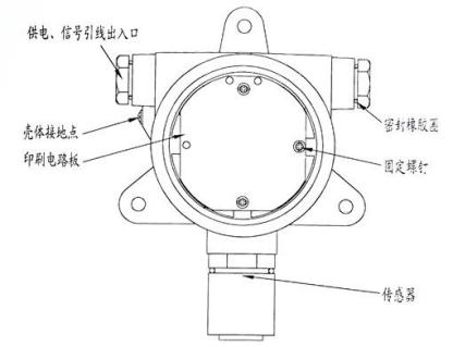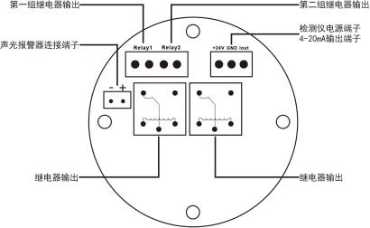 চিত্র 4 গ্যাস সনাক্তকরণ ট্রান্সমিটার বেসপ্লেট টার্মিনাল ব্লকের বিবরণ দেখায়:
